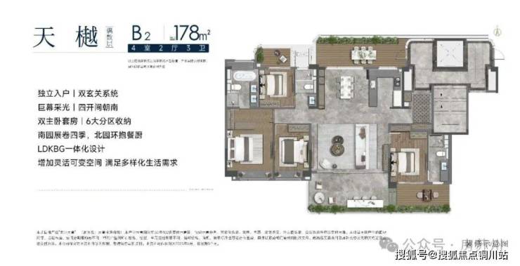 奇数层·花园露台:南向露台衔接主卧,私藏一方浮岛谧境;实用型北阳台,晾晒生活与诗意