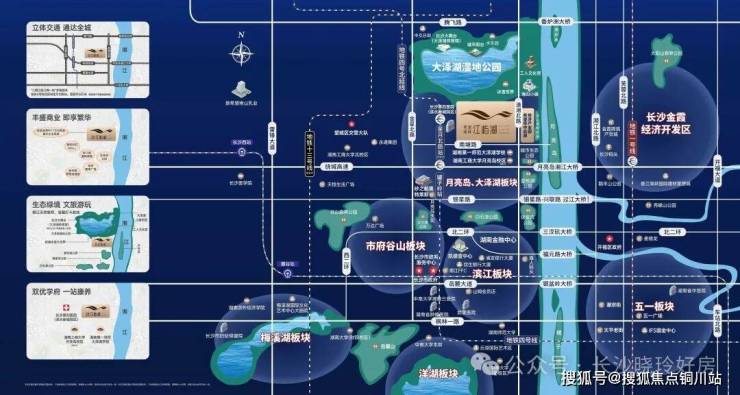 项目直距约500米即达湘江畔;长沙网红打卡地月亮岛,开放后业主步行约500米即可上岛游玩;步行约50米即约3000亩大泽湖近自然湿地公园,启动区即将迎来开园;星悦湖公园、白石湖公园等6大公园环绕,自然栖居。
