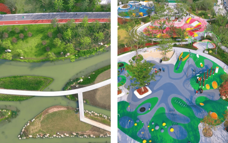 森系园林实景:约2.5万方莫奈艺术园林由国际设计团队操刀,浮岛花园、下沉庭院、绿野疗愈……均已实景呈现,行走其间,仿佛置身天然氧吧,名贵花木与艺术小品相互映衬,夜光跑道、全龄活动区巧妙穿插其中,日常休闲、亲子互动皆有好去处。