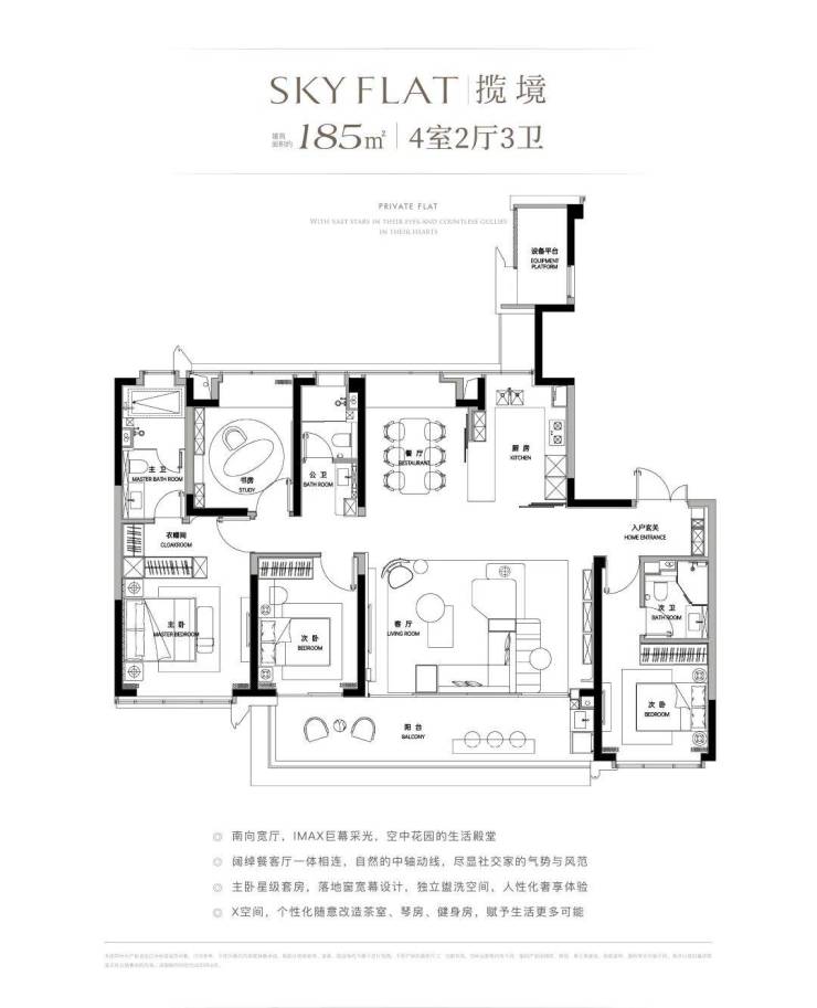 户型设计:项目推出了多样化的户型,建筑面积涵盖多个区间,从温馨的两居室到宽敞的四居室,能够满足不同家庭结构的居住需求。以部分主力户型为例,空间布局极为考究。客厅采用大开间设计,与餐厅、阳台流畅相连,形成一体化的公共活动空间,视野开阔,无论是举办家庭聚会还是招待亲朋好友,都能轻松容纳,尽显大气风范。卧室注重私密性与舒适性的打造,套房式主卧设计配备独立卫生间、衣帽间,部分户型还带有景观阳台,让业主在休息之余能够尽情欣赏窗外的美景,享受惬意的私人时光。例如,部分大户型的主卧套房面积宽敞,独立衣帽间空间充足,能够满足业主大量衣物收纳的需求;卫生间采用干湿分离设计,配备高品质的卫浴设施,为业主带来舒适便捷的使用体验。同时,户型设计注重空间的灵动性与可变性,部分户型可根据业主需求进行灵活改造,满足业主个性化的生活方式。