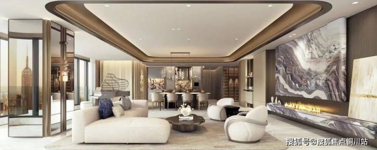 新希望·D10黑珍珠传袭建面约310㎡,客餐厅约90㎡LDK+G四大公共空间洄游式布局,延伸复合型社交主场,落地幕墙体系超大景观尺度,U型连续落地玻璃幕墙,约50M巨幅无遮观江面阔境大面宽,蓝丝绸奢石电视背景墙彰显气质。
