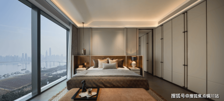 280户型融合了海派与法式风格元素。客餐厅利用两面幕墙引入自然光,营造通透的空间感,衔接室内外视野。芬迪白奢石与艺术金属精心打造壁炉造型背景墙,作为法式空间符号,展现了空间的高贵与艺术气息。餐厅采用雅致长桌设计,颠覆传统,为空间增添流动美感,南向主次卧,均以奢华酒店套房为设计蓝本,将法式风格的奢华与舒适融为一体。 在这里,不仅可以享受到优雅和浪漫,还能透过窗户领略到长江大桥的壮丽景色,尽显生活品位和人文气息。