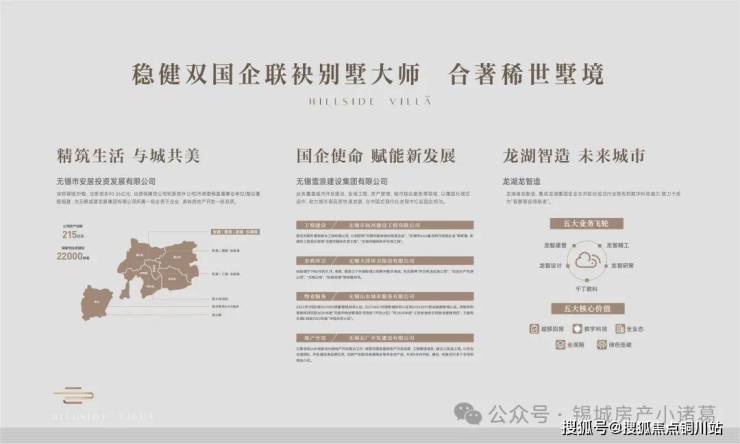项目为无锡市场罕见纯墅终改社区,项目业态及总价定位锚定社区业主均为无锡名门隐贵;项目周边均为高科技客研机构、高等院校、自然山水围合,高知为邻,内外圈层皆纯粹,无锡难有其二;项目定制巨幕观湖会所,匠造理想塔尖圈层生活场,不是所有人都能成为云山院业主,无锡约2.5万人仅1人列席。
