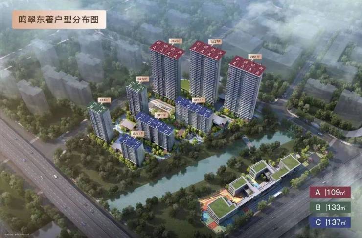 户型设计:项目以建面约 109-137㎡滨水华宅为主,户型设计科学合理。如南向三开间 + 双联阳台设计,面宽约 9.9 米,6.6 米观景阳台串联客餐厅,引光入室;四叶草格局 + 南向 12.4 米面宽,5.5 米奢阔客厅 + 开放式书房,满足三代同堂居住需求;双套房设计 + 双卫配置,主卧独立卫浴、次卧灵活可变,适合品质改善型购房者。