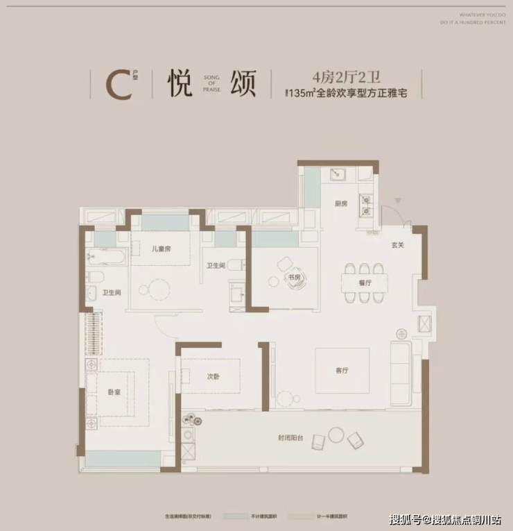 建面约135㎡方正雅宅:堪称“全龄家庭”的理想模板。户型方正,三面宽景,南北通透。约9.1米南向超大面宽,结合LDKBG一体化设计,打造开阔全景社交厅。“3+1”可创变空间,为书房或多功能房提供可能,灵活适配未来的家庭成长。
