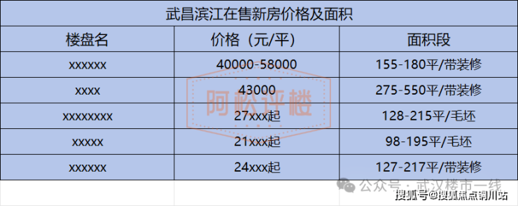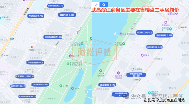 与之相比,武昌滨江新房单价则约21XXX-4XXXX元/平不等,只有核心区极个别楼盘单价约4万+元/平,置业门槛约200多万起。
