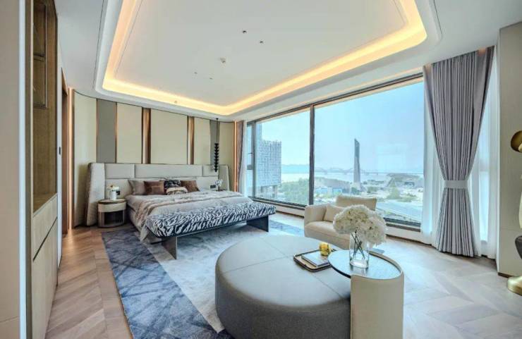 北面的主卧套房面积达约65㎡,开间约6.4m,享有巨幕级瞰江视野。窗外,是一派繁华的辽阔视野;窗内,则是显赫的居住尺度。悦江洋为居者构建出完整而独立的私人天地,让主人公的气场全开!