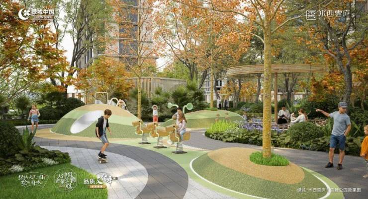 全龄儿童游乐区是孩子们的童话王国,柔软的地面搭配趣味木马与多样设施,让小业主们能放心追逐嬉戏,把清脆的笑声撒在阳光下;休憩区藏着法式浪漫,典雅的法式拱门勾勒出优美线条,搭配摇晃的秋千与舒适的休息椅,午后在这里读书、会客,或是单纯放空,微风拂面间尽是惬意;中央草坪活动区是社区的“社交会客厅”,高尔夫级别的草坪柔软如毯,周边点缀着造型小熊、爱心绿植,无论是家庭野餐、孩童奔跑,还是邻里小聚,都能在这里找到舒适的空间,让自然成为生活的背景板。公园不仅是风景,更是承载社交、休闲、娱乐的活力场域。
