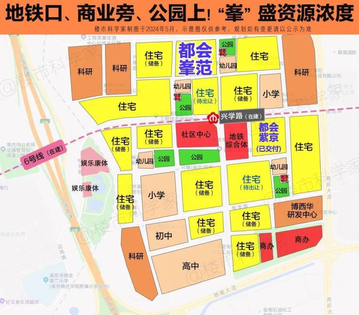 除了地铁口在侧,项目周边还有众多教育、公园、综合体及社区中心等用地,特别是金陵小学分校(期房不划分学区,具体请以官方通知为准)已经落地片区,将极大提振区域教育水平。同时,也预示了区域未来强大的发展势能,你想啊能够被百年名校相中的板块会差吗?