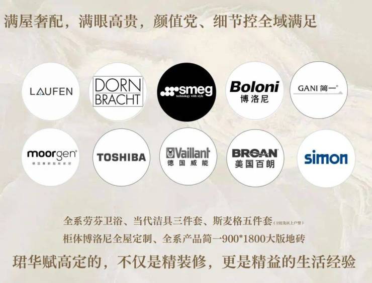 斯麦格的厨电、全系劳芬卫浴、主卫中当代的洁具、全屋博洛尼定制柜体。