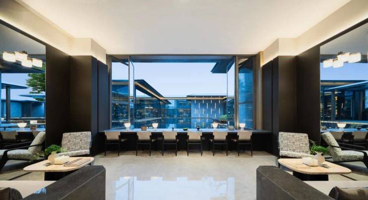 它将现代艺术与中式禅意融合,划分出休憩、享宴、茗茶、对弈等功能,既能众乐,亦能自洽。