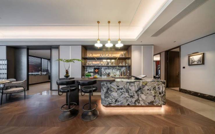 细数整个公区,芬迪白、雅柏白、水云间、星耀灰等9种天然奢石的匠心应用,造价之昂贵,令人咋舌。