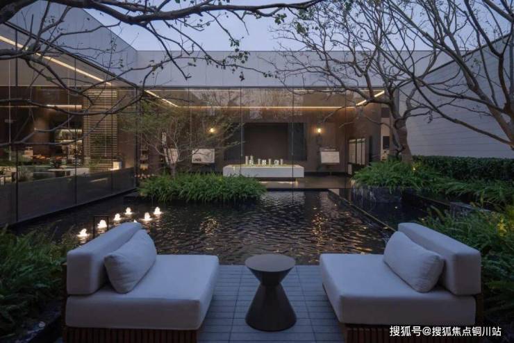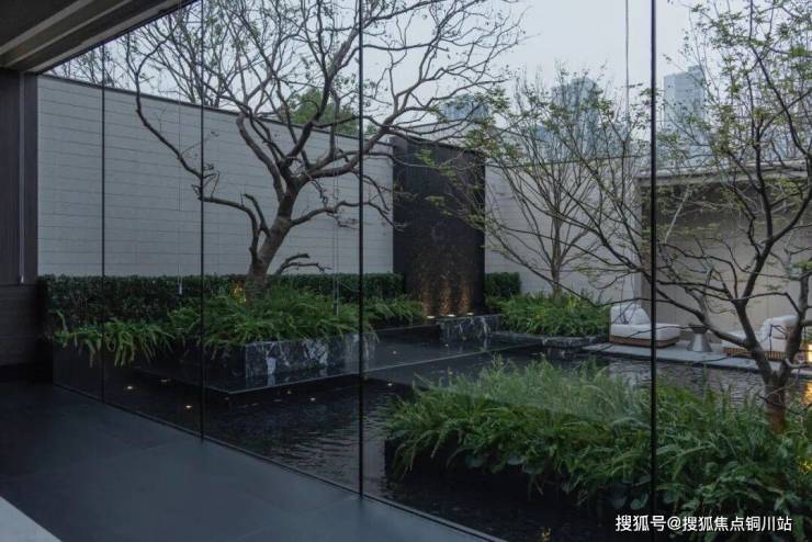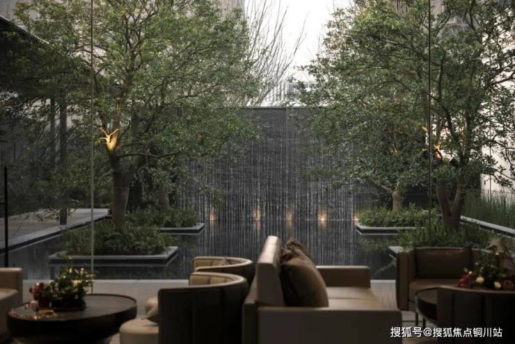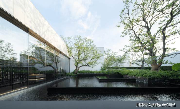 层次丰富的水台,叠影出多娆的树影,或飘逸,或优雅的姿态,透过建筑落地窗形成斑驳舒雅的空间谧境。在水苑中拾得一片宁静,回应当代都市人对生活的追求与渴望,将闲适时光拉长,达到生活的平衡与内心的宁静,重新与本真的自我建立链接。