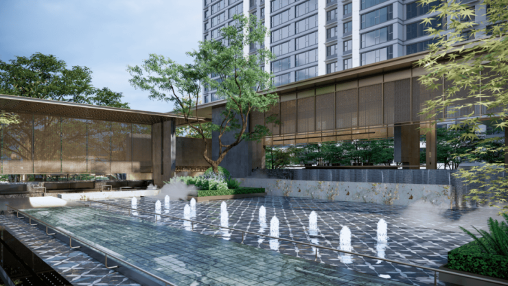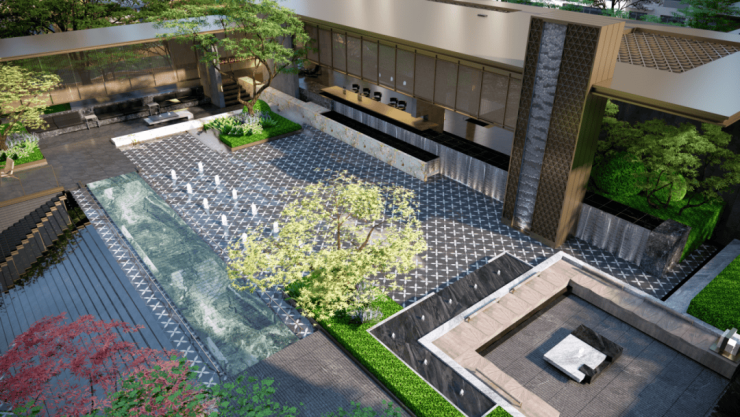 鼎级景观设计大师奥雅股份李宝章打造 “一轴一环双苑八境” 围合园林,10000㎡中央庭院与 90 米奢阔楼间距,让 “推窗见绿、出门入园” 的诗意,成为 CBD 繁华中的难得静谧。