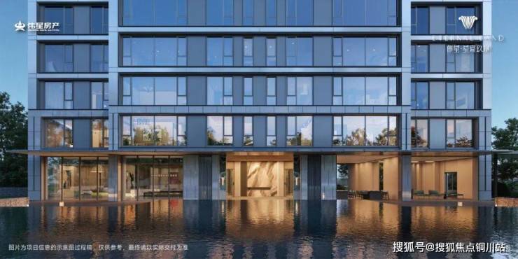 类公建化外立面,银白色铝板搭配南向全落地玻璃,打造出蓝钻天幕般的视觉效果。