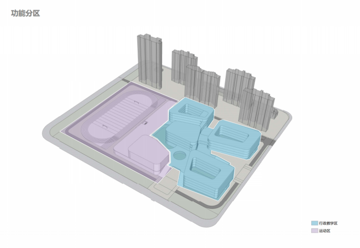 ▲ 行政教学区为东部静区,运动场为西部动区,动静相宜