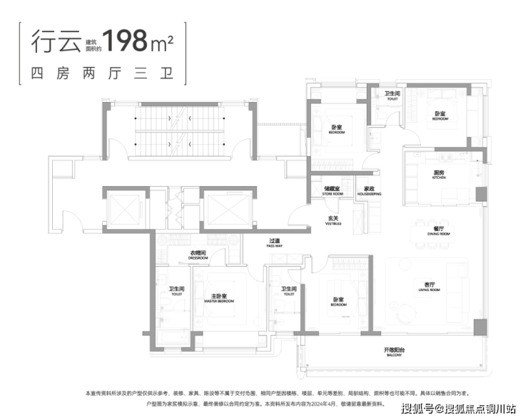 中海狮山云起项目户型设计都是改善大平层,建面约153、183、198、223㎡户型。
