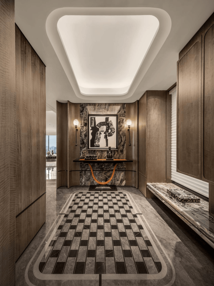 归家大堂以殿堂气度,恭迎每一位归来的主人,挑高空间与通透立面,延伸出无限的包容感。