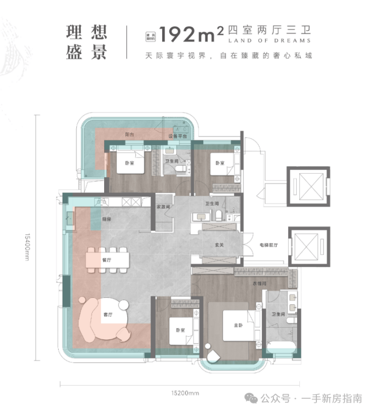 建面约192㎡,提供豪宅大平层的居住体验。