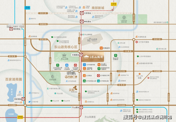 随着地铁5号线已全线开通运营以及未来土山机场搬迁,将彻底激活江宁与南京主城的“最后一公里滩涂”。东山正以“2站南部新城、7站夫子庙、10站新街口”的极速链接,崛起南京主城一体化格局!东山,至此走向城市前台。而中建东山樾府,踞守5号线地铁口,以地标级人居价值,重塑当代东山人居封面。