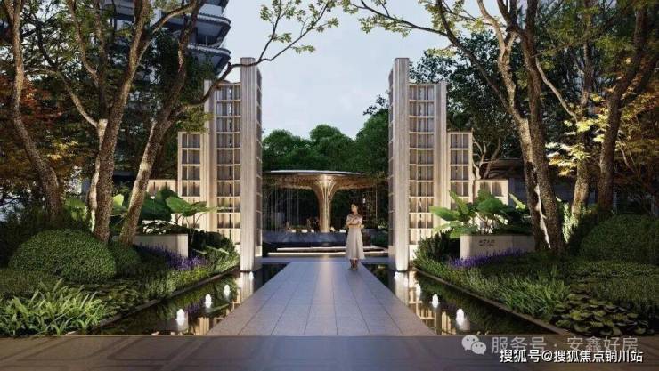设门、台、水、亭四点成线,借鉴匠法于中央水景巧设全景会客厅,打造立体多维水景园林。