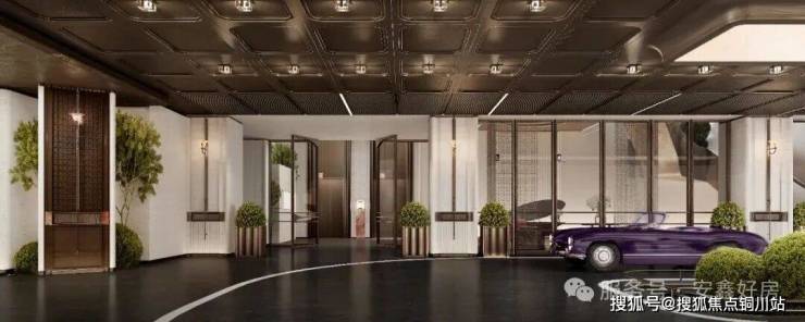 中央车站式大厅「铂金仓」采用奢石“红丝绸”,设计完全独立、双向通行的尊荣车道;