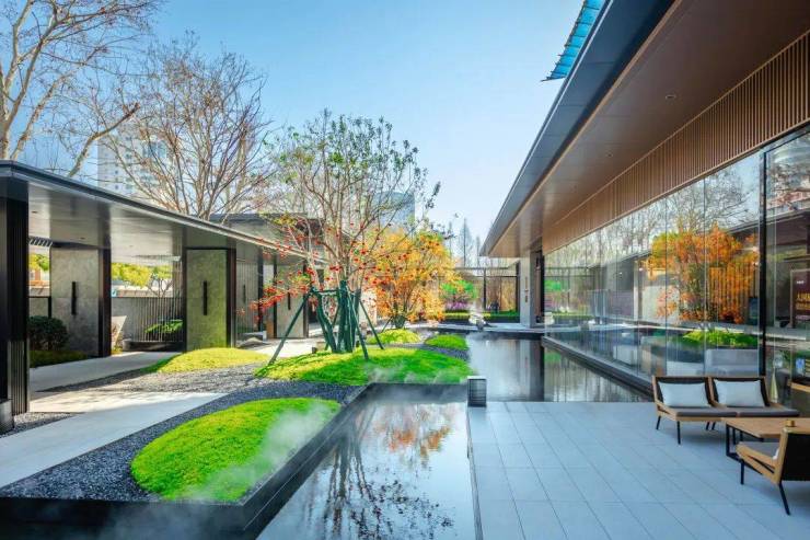 穿廊进院,直面中式水系庭院,以一进门、二进庭、三进园、四进院的动线,层层递进。