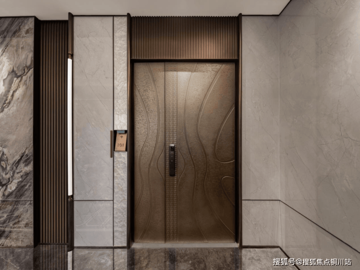 室内从吊顶的弧形元素,到墙面复杂的金属+软包线条,再到金属门框的光泽,甚至控制面板的质感,都体现出海派东方的典雅韵味