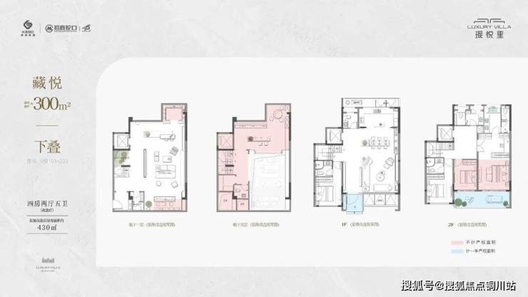 • 建筑面积约300㎡下叠,实得面积约430㎡,四房两厅五卫