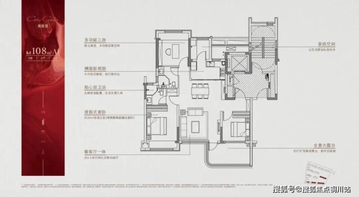 其次是使用率的突破。作为首次开盘主力户型,颐和·金陵印建面约108㎡三房两卫户型,通过四代住宅创新设计,打造出超越面积限制的阔绰空间感,实现约97%的使用率,重新定义了主城改善的门槛标准。
