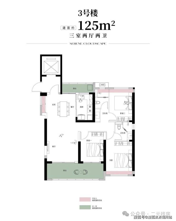 三个户型共同特点就是贯通式大阳台,125㎡的户型还是南北双阳台。