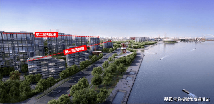 西侧沿江布置6栋8层住宅(其中靠世博大道5栋为保留建筑),东侧沿雪野路布置19~22层住宅,形成西低东高两道天际线,最大程度利用江景资源。由于马路对面就是黄浦江,没有任何遮挡,所以整个社区未来基本可以纵享一线滨江景。