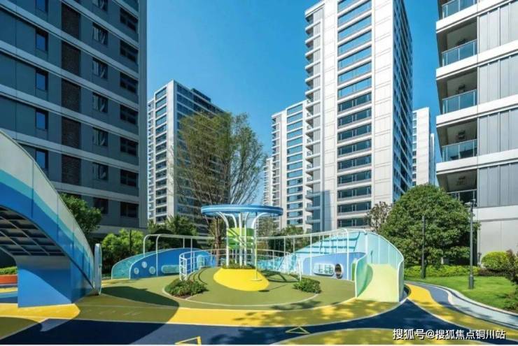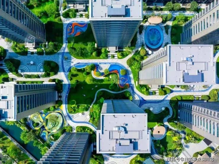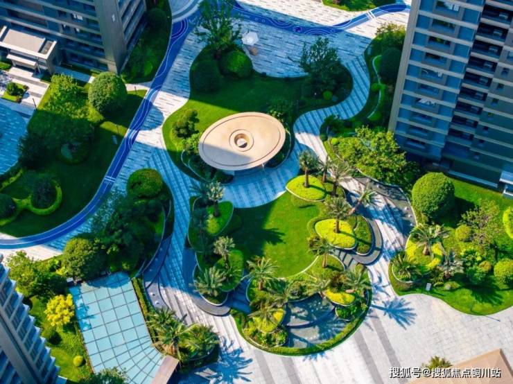 走入栖江揽月轩园区,能看到随处可见的棕榈树、层次分明的植物组团、错落的跌水以及标志性的蓝宝石戏水池,还有全龄化适用的健身休闲场景,如塑胶跑道、童玩乐园等。