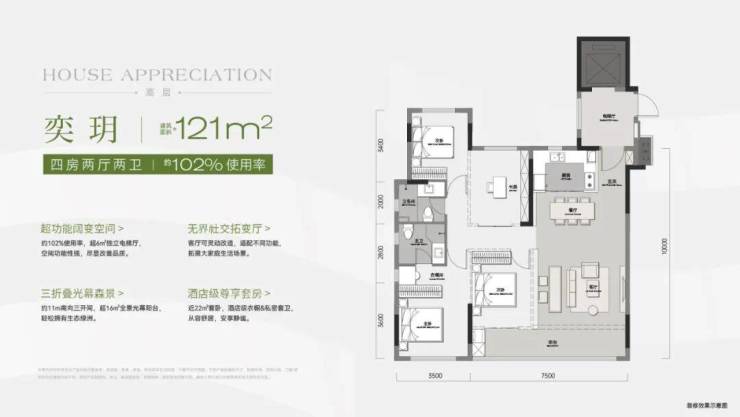 高层「奕玥」约121㎡四房两厅两卫/约102%使用率