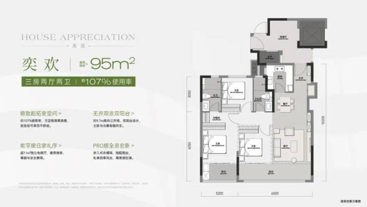 高层「奕欢」约95㎡三房两厅两卫/约107%使用率