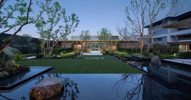 “榆柳荫后檐,桃李罗堂前”,中国人对自然的向往,在江南潮鸣约252米景观中轴上尽数实现。跨度如此之大的景观轴,即便在绿城全国项目中也极为少见,沿轴景观徐徐展开,如画卷般动人。