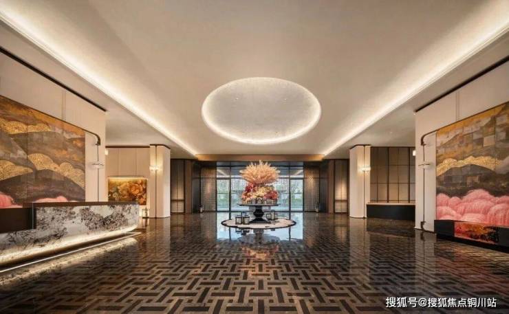 会所大堂当然也是正对着下沉式庭院。紫金·翡丽甲第选用的落地窗,最大的一扇落地窗达到了7.7米宽,把下沉式庭院的水光和天光,无限收入室内。到了晚上,空中会弥漫着鎏金岁月的气息,泳池中的那轮圆月,就在你眼前,照耀着在月光中畅游碧波的人。