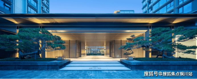 尚云赋的南侧主入口,重檐门庭、金属格栅、意趣昆石,搭配约70万珍稀古树,还原宋画中深宅大院的威仪。约57米恢弘尺度,媲美南京总统府门庭气度。东侧主入口,单是两株苍劲黑松,价值就达百万。其门头投入之重,可以想见。