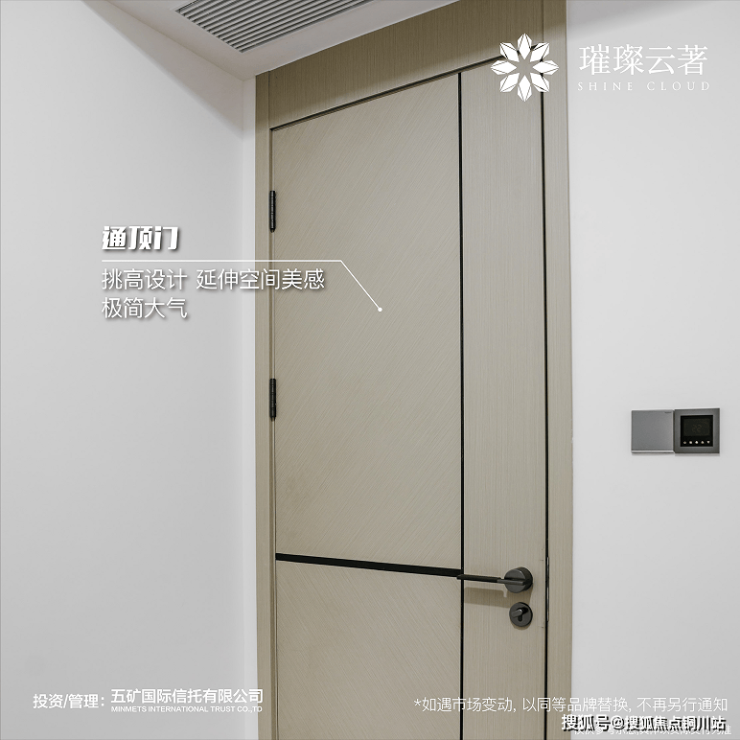 挑高设计的通顶门,极简大气的审美正中年轻人的下怀;皮革质门把手,生活的品味与品质就这样被璀璨云著“藏”在细节里。