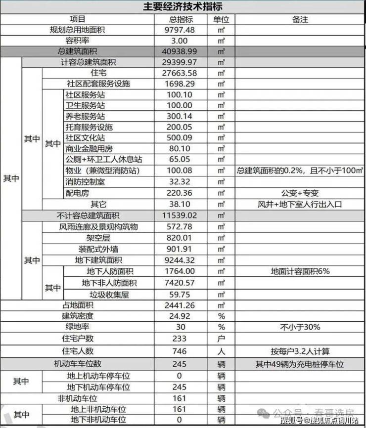 据经济技术指标显示,联发悦榕华规划用地面积为9797.48平米,容积率3.0,总建筑面积为40938.99平,其中计容总建面为29399.97平,住宅建面27663.58平,绿地率30%,规划233户住宅,机动车车位245个,均为地下停车位,另有161个非机动车位,均为地上。