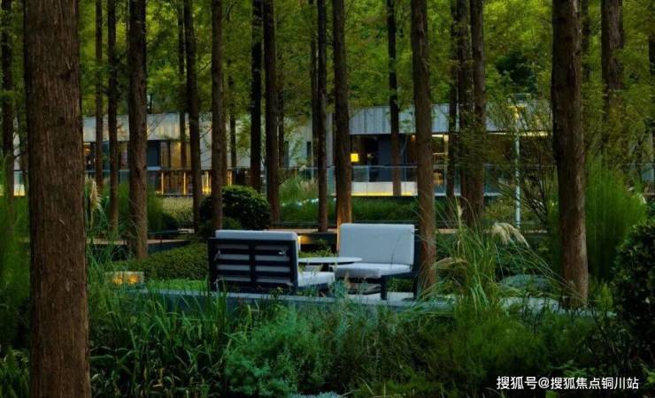 会所围绕下沉式庭院展开,既保障了采光,又大幅提升景观体验。透过落地窗,绿意、光影和潺潺流水尽收眼底,生活与自然温柔相拥。