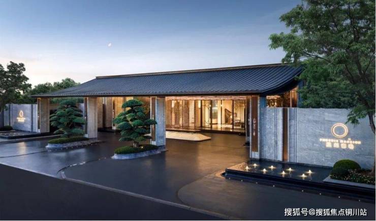 社区主入口“凤起冕旒”,以约85米长的门廊构建出强烈的归家仪式感,材质上融合金属、石材与手工景泰蓝细节,内檐叠瓦与嵌入式光带的设计,使建筑能随自然光景呈现不同氛围。