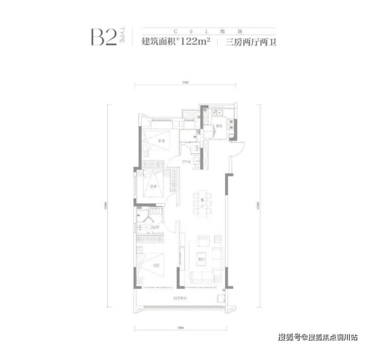建面约122平 三房两厅两卫: