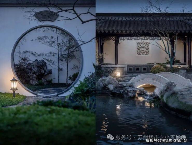 归家礼序:复刻士族 “五大进第”(主入口→迎宾水景→松石组合→雅士会所→赏景归家),享尊贵仪式感;中央花园以大水面锦汇漪为核心,配太湖石、曲廊、亭榭、垂虹桥等,再现江南 “小桥流水” 意境。