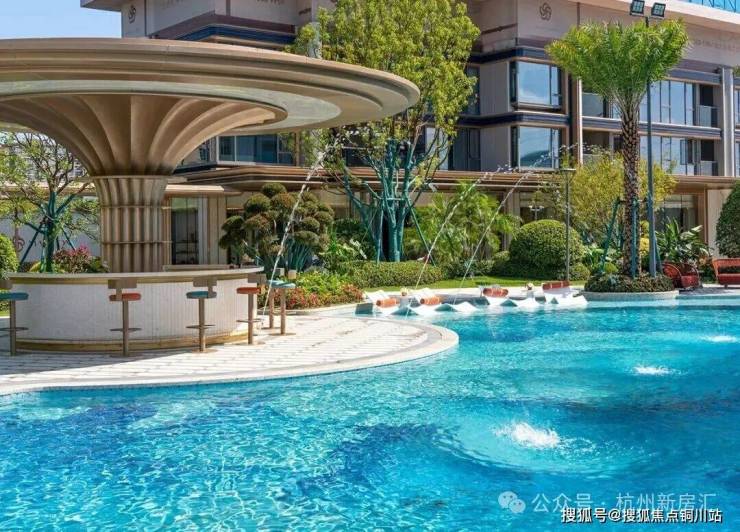 小区的园林景观一如既往延续了滨江的水准,中心区域设置了自然度假式的景观水池,配合棕榈等热带植物,结合着开放式酒廊和下沉卡座,整体度假氛围很不错。未来园区内还会设置童玩区等设施。
