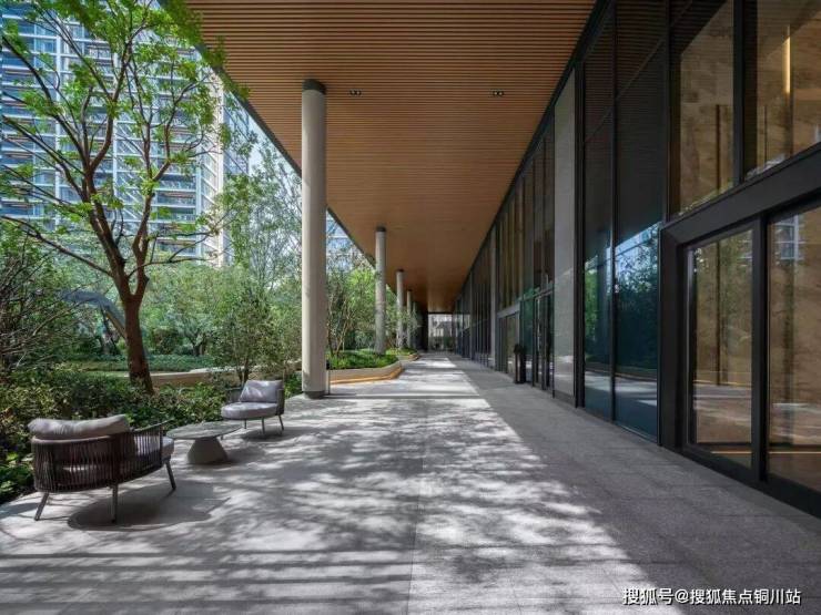 园区入口9米挑高的风雨连廊紧密衔接,无断点覆盖园区内景观,风雨无阻的回家路。悄然徘徊于连廊,将自然引入廊架空间,围炉夜话聆听夜晚的低语,与故事中的人物相遇,在岁月流转中感受诗意相伴。