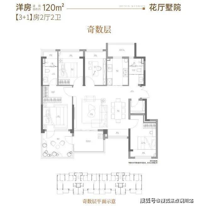 3栋洋房(1+9层)建面约120㎡,得房率约83%,加上赠送面积,得房率约107%;