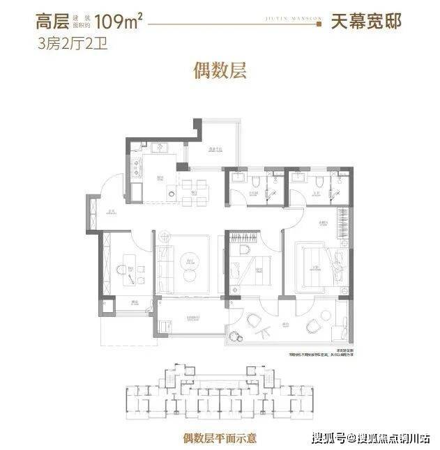 5栋高层(1+24层与1+22层)户型建面约109㎡、119㎡,得房率约73%,加上赠送面积,得房率约99%;