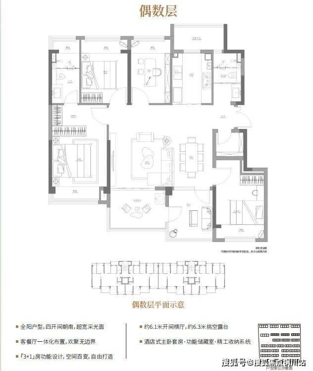 洋房面宽约12.5米,最大程度将视野和空间链接,四开间朝南,3+1多变空间,采光面很棒。(户型图见下,左右滑动查看)
