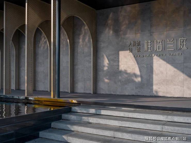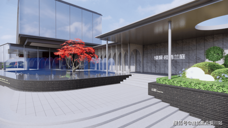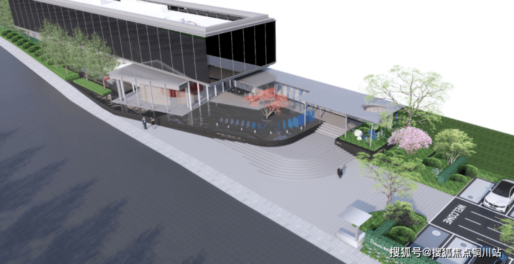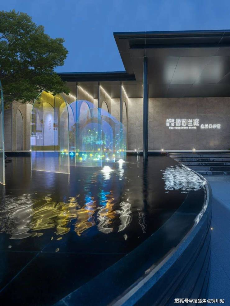 在场地入口设置镜面水景,